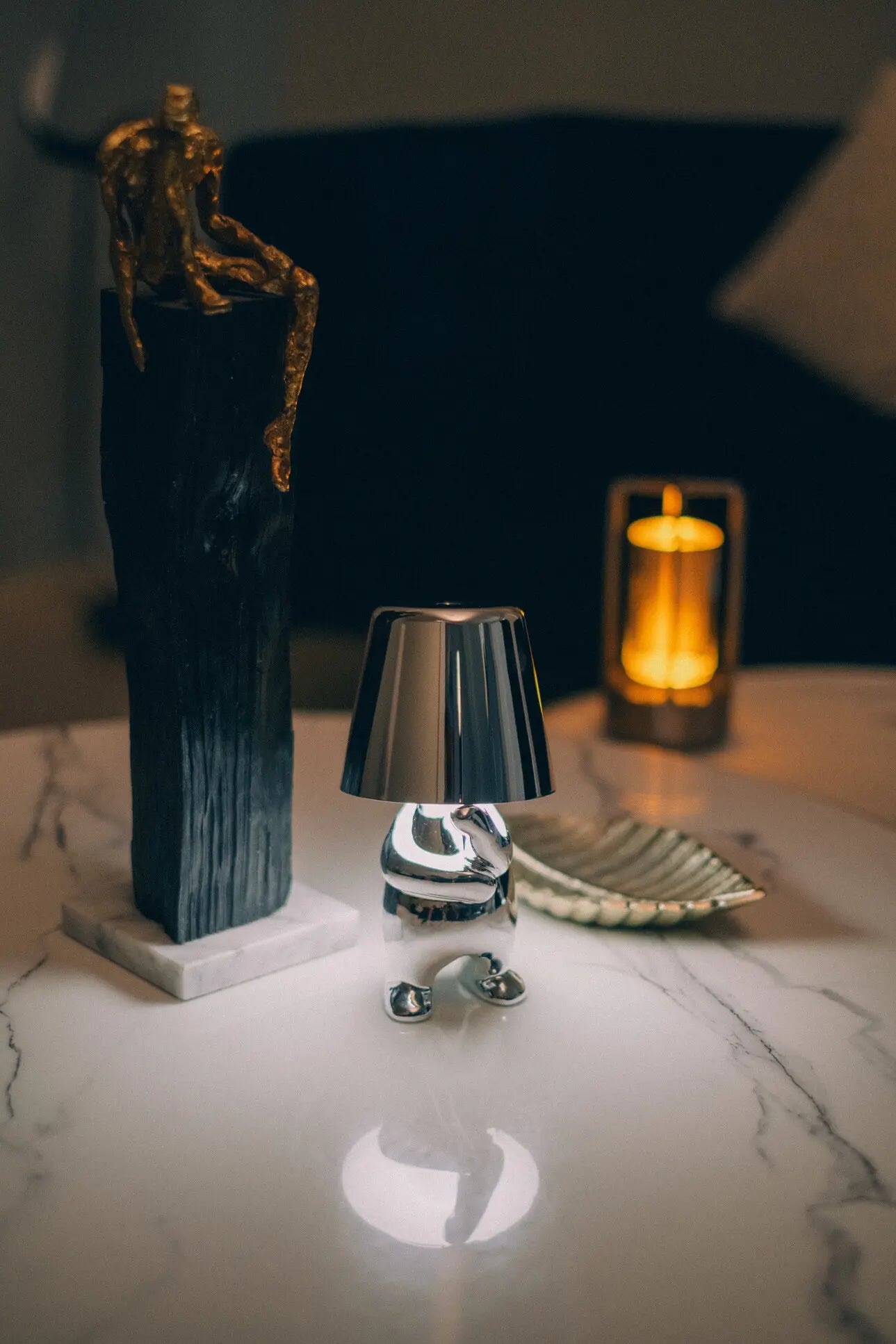 Designed without cords or clutter, our lamps move effortlessly from table to table. A soft, ambient glow lasts for hours on a single charge, allowing moments to unfold naturally — uninterrupted, elegant, and intentional.