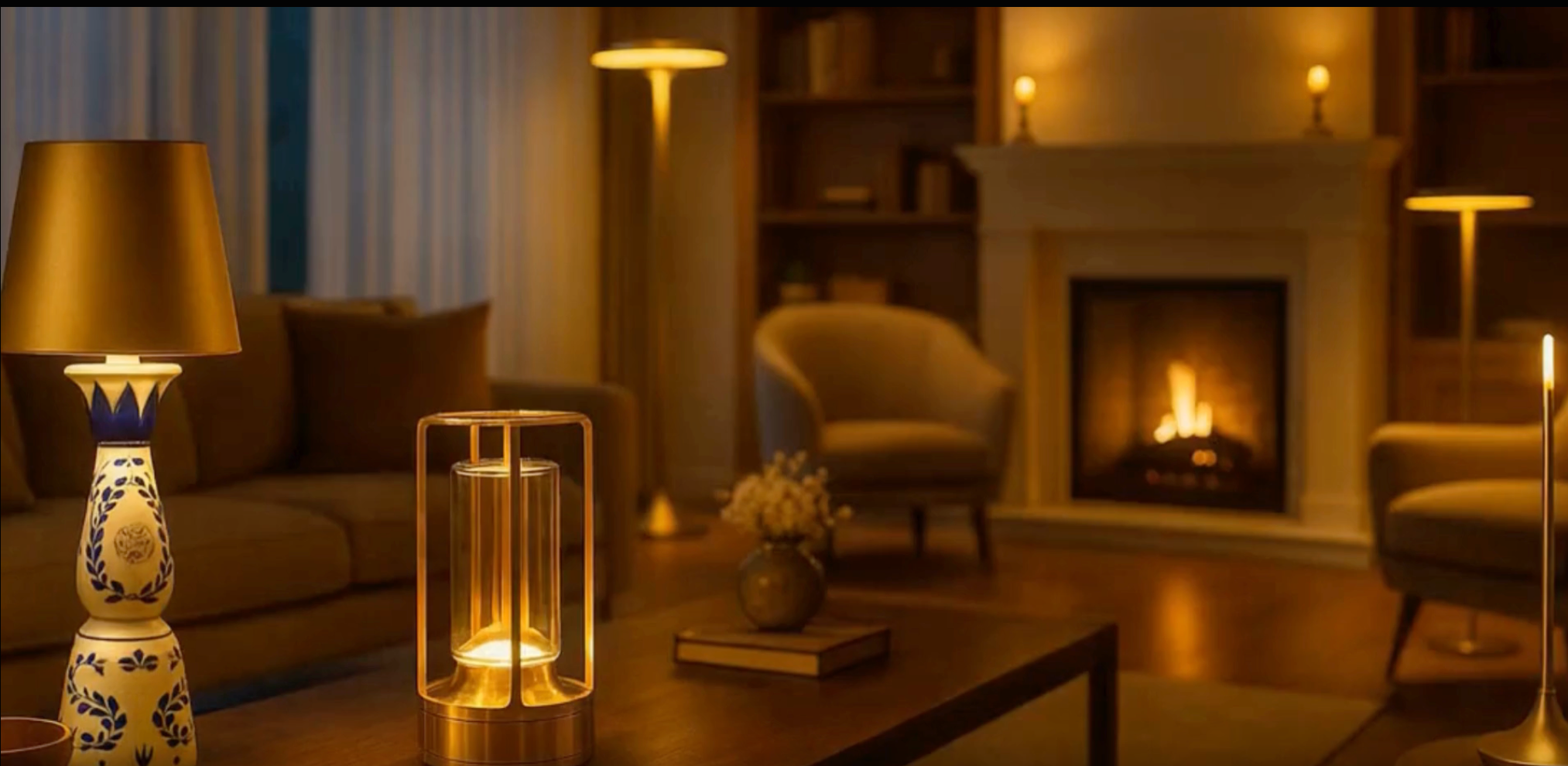 Sculptural, cordless designs that bring quiet elegance to any space — creating warmth and ambience at the touch of a button.